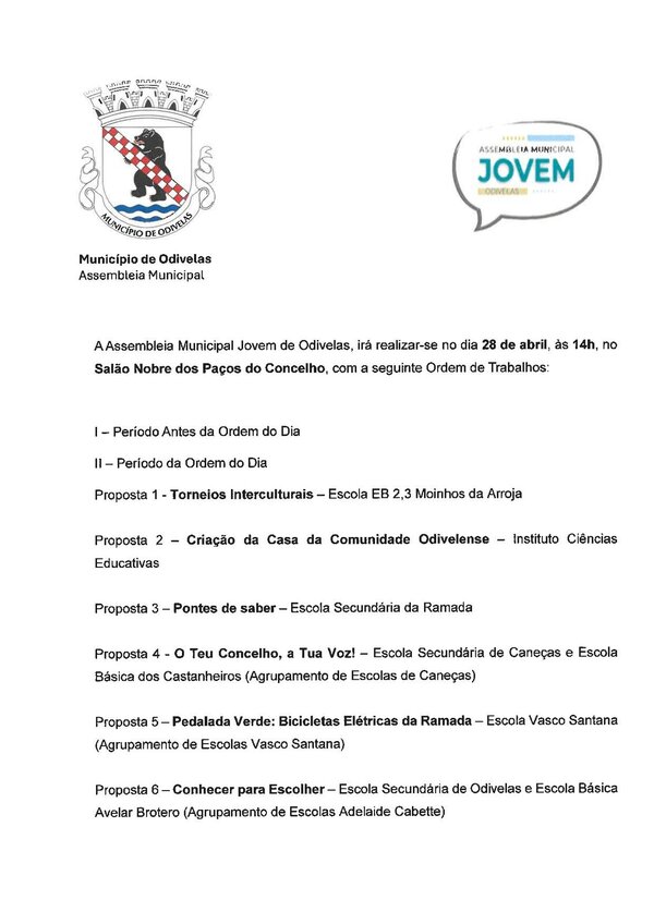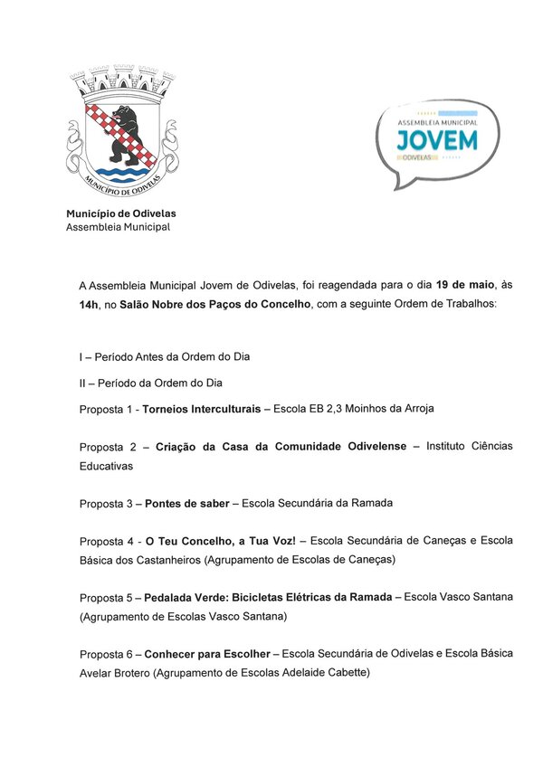 Assembleia Municipal Jovem de Odivelas - Adiada